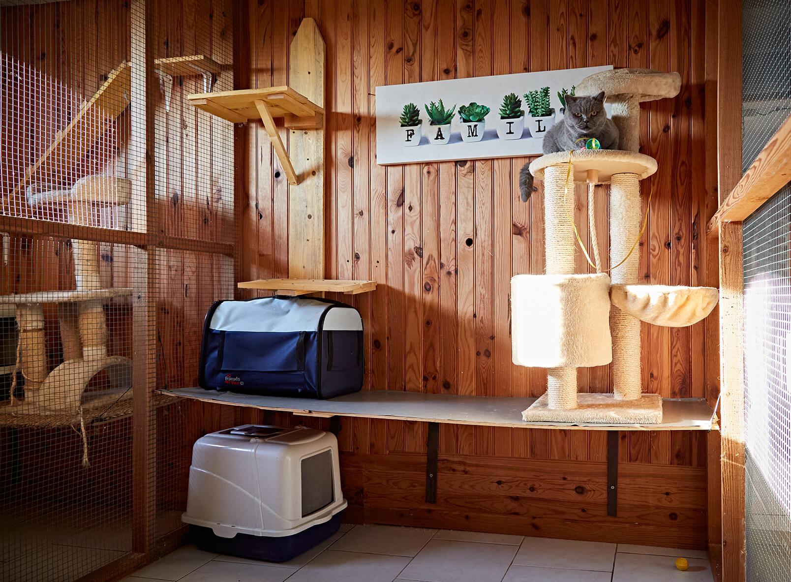 Nos box individuels pour chats sont conçus pour répondre aux besoins de nos amis félins. Nous leur avons aménagé des petits cocons confortables : box carrelés et chauffés, avec petit mobilier et décoration.